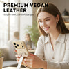 PREMIUM VEGANISTISCH LEER - Ervaar de verfijnde look en feel van echt leer met ons hoogwaardige veganistische materiaal. Het biedt een comfortabele, antislipgreep en voegt een vleugje tijdloze elegantie toe aan uw telefoon.