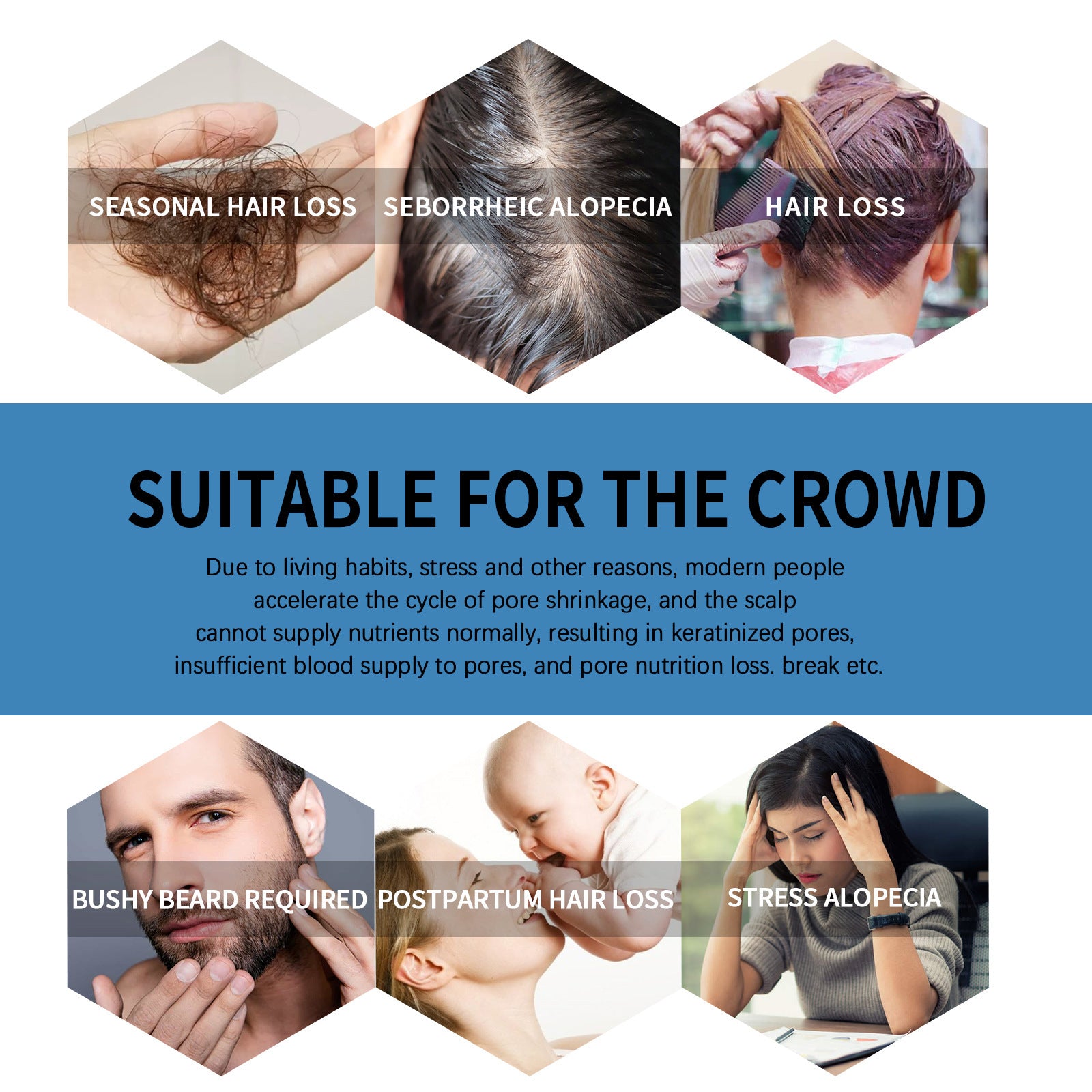 Ideaal voor mensen die last hebben van seizoensgebonden haaruitval, seborroïsche alopecia, stressgerelateerde haaruitval of haaruitval na de bevalling. Ook perfect voor mensen die een volle baard willen laten groeien.