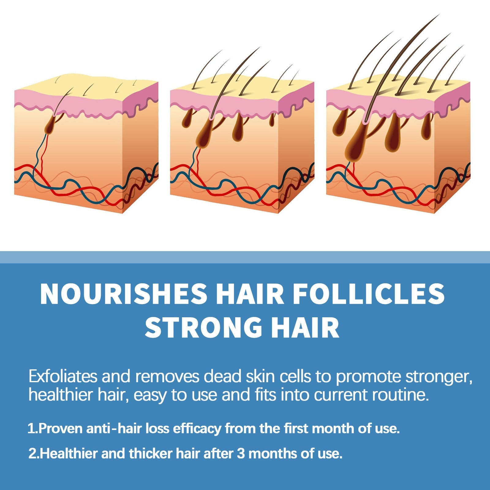 Voedt de haarzakjes effectief, verwijdert dode huidcellen en verbetert de micro-omgeving van de hoofdhuid, waardoor de vitaliteit van de haarzakjes toeneemt voor sterker haar.